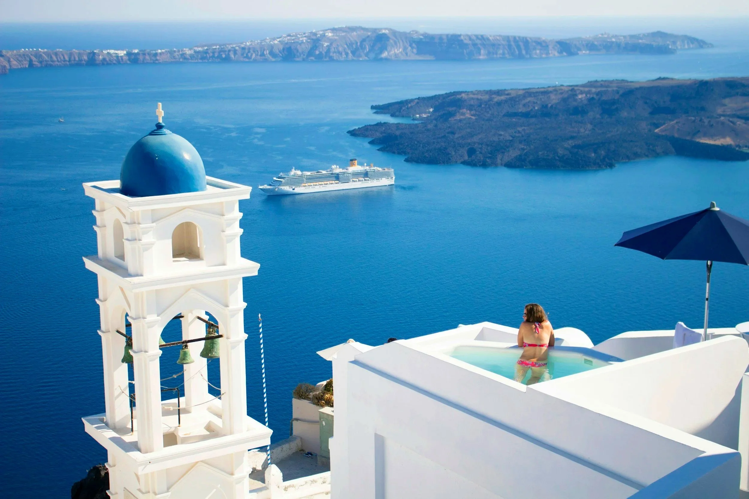 .Una de las islas más icónicas del mundo, conocida por sus casas blancas, cúpulas azules y espectaculares vistas al volcán. Los atardeceres desde Oia son considerados los más hermosos del planeta. Sus hoteles boutique, viñedos y playas de arena volcánica ofrecen una experiencia exclusiva y romántica.